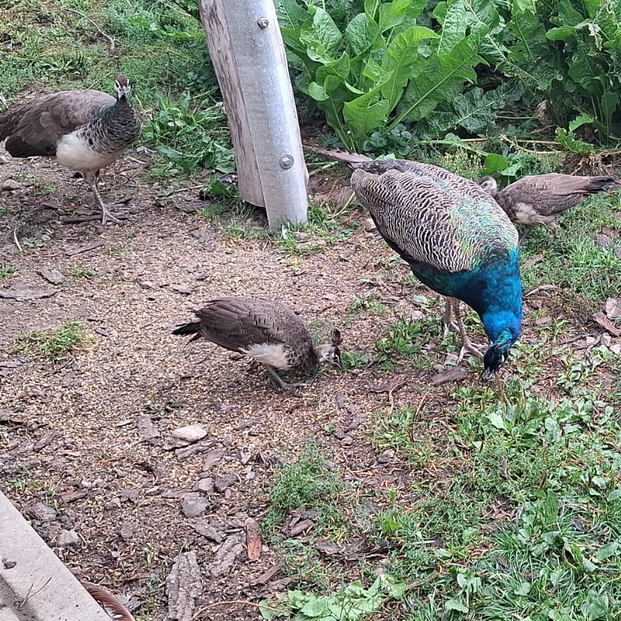 Unsere Pfauenhenne hat im Frühjahr ganz überraschend zwei Küken ausgebrütet. Da unser Gehege nur begrenzt Platz bietet, möchten wir die beiden Jungtiere nun in liebevolle Hände abgeben.
